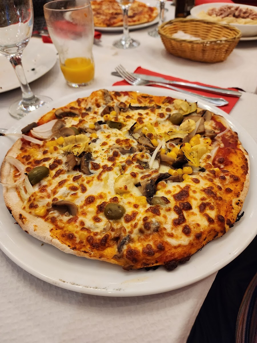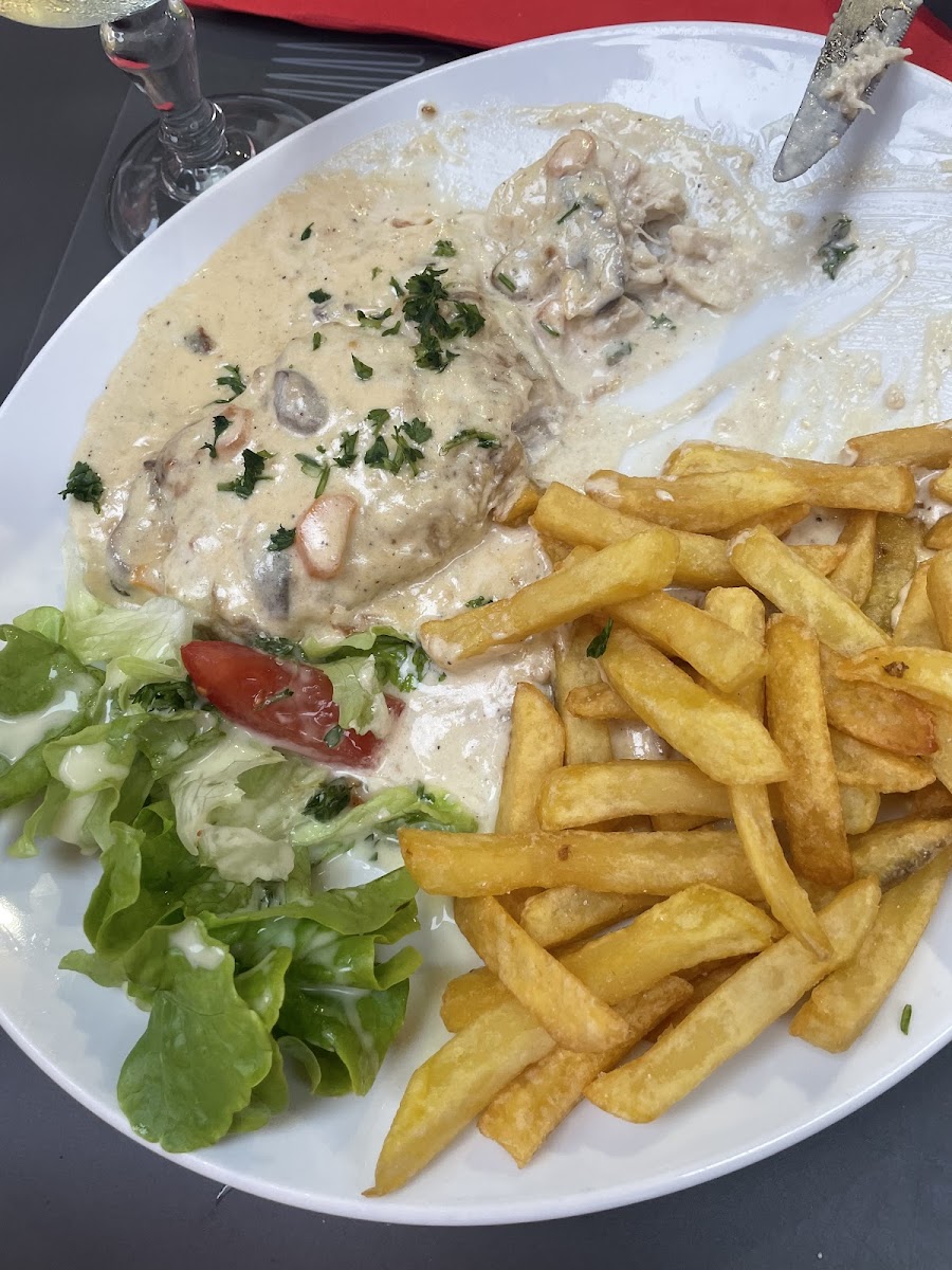 We didn’t have a reservation and were able to get a table for 2 without any problems. It took around 5 minutes after we’ve been seated to receive the menu. Another 5 minutes until our drinks were served. Alcoholic drinks are cheap but the glasses are also small. For the “Entre” we ordered crepe with mushrooms and cheese and an onion soup. We’ve received a vegetable soup instead, because there was no onion soup left. The Entre were good and tasty. The main dish was a pizza with salami/ chorizo. The pizza tasted good, but I was confused about the dough. It felt like a supermarket pizza. As mentioned though, overall it was good. We also had mussels, which were also tasty. The included fries were very bland, no salt and no taste. As for dessert we ordered a crème brûlée and a mousse au chocolates, which were delicious as well. Price wise it’s a good place to eat. Would stay away from the fries though.